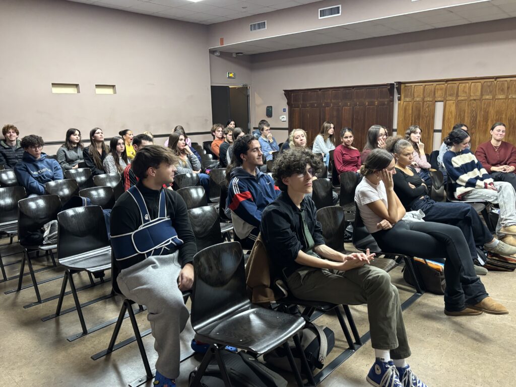 Marine Huard a commencé par retracer son parcours, celui d’une hypokhâgneuse admise ensuite à Sciences-Po Lille. Après un master au Collège d’Europe et de premières expériences professionnelle, elle travaille désormais pour divers organismes, dont l’AP-HP ou l’Institut de Pasteur, pour lesquels elle effectue de la gestion de projets. Le récit de son parcours était déjà riche d’enseignements pour nos étudiant•es.