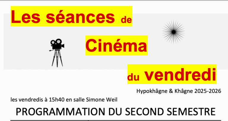 Le programme du ciné-club pour le second semestre de l’année 2025-2026 a été conçu par et pour les étudiant·e·s, d’aujourdhui ou d’hier.