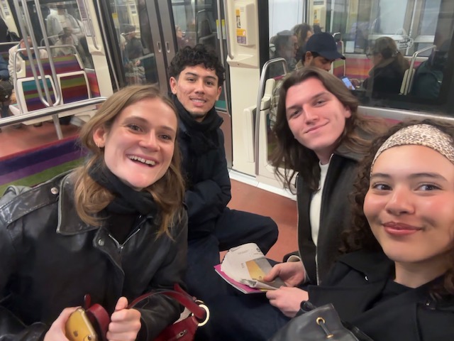 Retour de spectacle, samedi 20 décembre, pour Ruben, Dionis et Maya – de LS1 – en belle et bonne compagnie : à gauche, Maïa Foucault, ni plus ni moins qu ‘Aristophane à la scène !