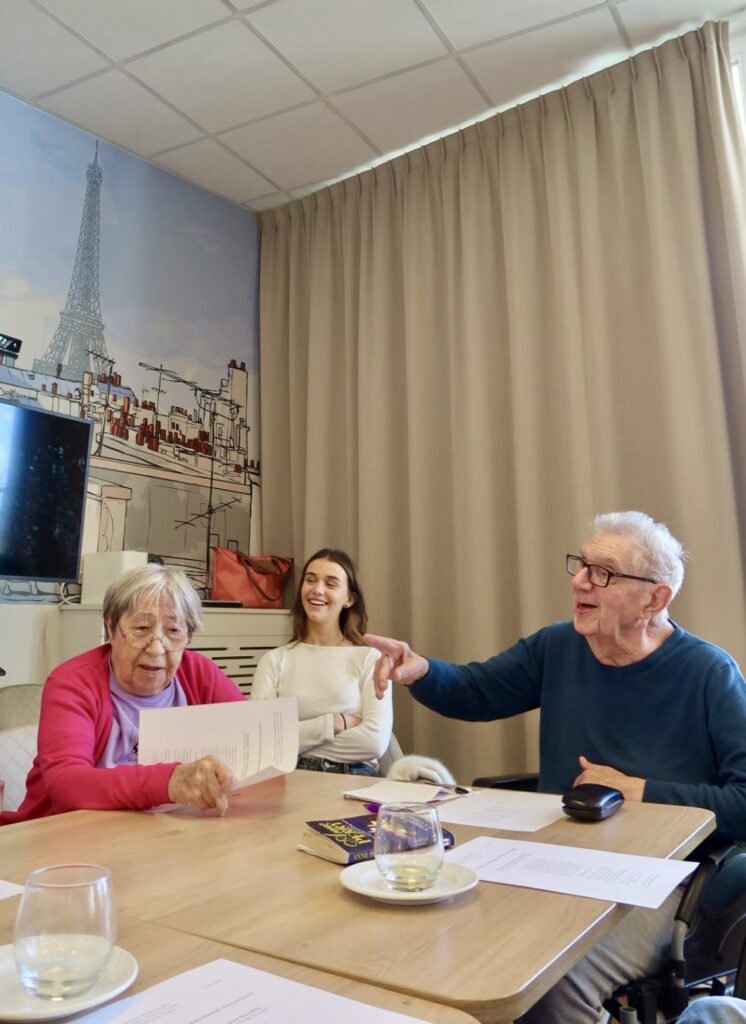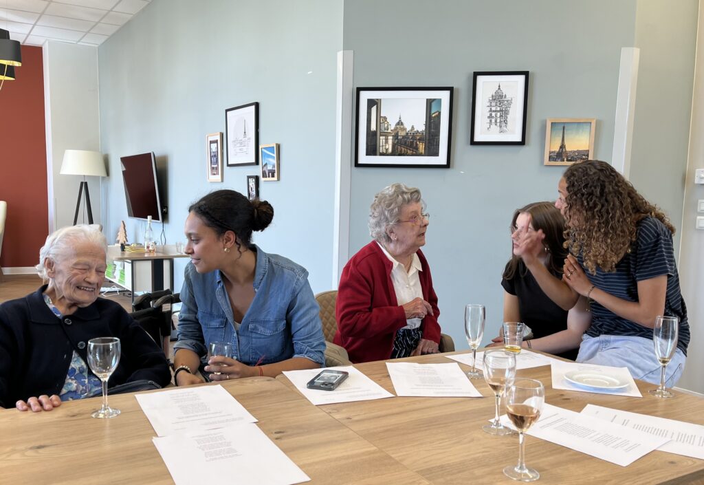 Voici les pistes de réflexion empruntées par vendredi 23 mai par Joanna, Juliette, Lola, Louella, Ondine et Priscille avec les résidents et résidents. Et nous avons commencé en chanson avec « Le blues du businessman ».